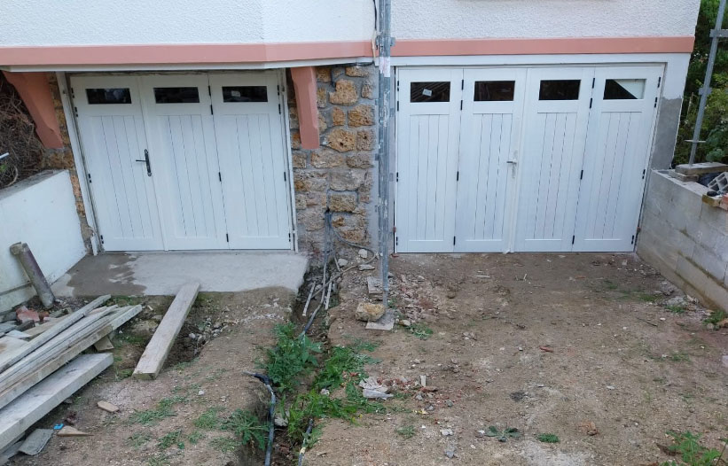 La pose des portes de garage a été réalisée avec une attention particulière pour garantir un fonctionnement fluide et sécurisé. Les systèmes de charnières et d’ouverture ont été calibrés pour offrir une utilisation facile et sans effort, tout en respectant les contraintes structurelles des garages.