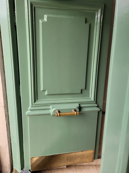Les dégradations les plus courantes sont observées dans les parties inférieures en raison de leur exposition aux intempéries ainsi qu’aux chocs et à l’urine des chiens (parfois des humains !). C’est pourquoi des plaques de laiton sont posées sur les plinthes et même sur les panneaux. Ces dégâts peuvent être évités assez facilement avec un nettoyage régulier de la porte : il faut refaire la peinture extérieure tous les 2 ans, et un vernis tous les 5 ans, au minimum pour la partie basse.